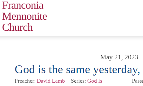 On Sunday, May 21, I preached at Franconia Mennonite Church on “God is the Same, Yesterday, Today, Tomorrow.” If you’ve read God Behaving Badly, you may be wondering, “Don’t you say, ‘God changes’ in your book?” Well, that’s a good question. As I state in this sermon, God’s character doesn’t change, but our prayers do make a difference to God. I talk about Hezekiah’s prayer (2 Kings 20), and the Syrophoenician woman’s “prayer” to Jesus (Mark 7). And I tell my story of health issues, including my recent colon cancer surgery. When I was discouraged, sitting in my hospital room, wondering if God was going to heal me, God remained faithful to me. I hope this helps to motivate you to pray. The video is 47 minutes. I start at about 5 minutes, and go for about 30. Enjoy.
